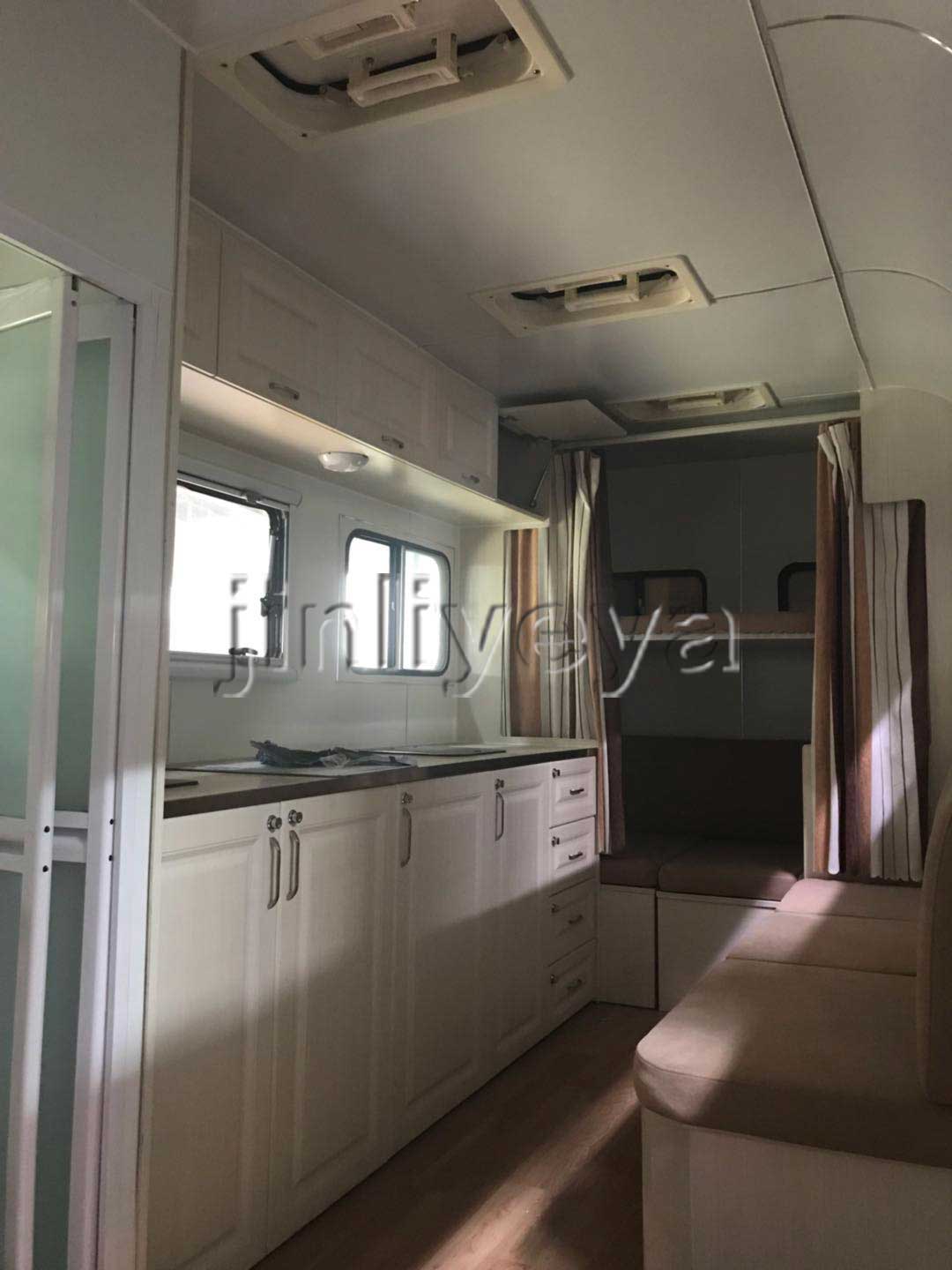車內(nèi)寬敞而豪華,具備各種家具、車載家用電器、儲(chǔ)存柜、桌椅沙發(fā)等,面積一般可達(dá)40平米左右,洗碗機(jī)、全自動(dòng)洗衣機(jī)、烘干機(jī)、房車專用水箱、整體浴室、衛(wèi)星天線、暖冷系統(tǒng)、網(wǎng)絡(luò)系統(tǒng)、電話機(jī)、傳真機(jī)、GPS、視聽娛樂(lè)設(shè)備、倒車監(jiān)視系統(tǒng)、防撞車警報(bào)系統(tǒng)、安全報(bào)警系統(tǒng)、我游房車將其分類等應(yīng)有盡有。